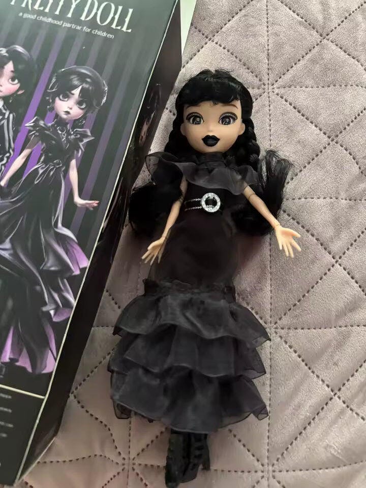 She comes complete with her loyal companion Thing, a gothic backpack, and a collector display stand for graceful display.