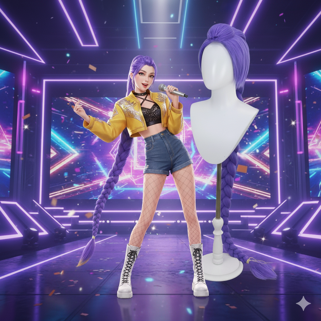 It’s a colorful, soft, and easy-to-wear wig that lets kids express their creativity and feel like real K-Pop idols! Perfect for playtime, parties, or everyday fun.